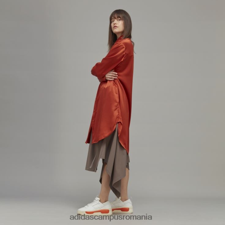 o sărbătoare a ultimelor două decenii de y-3. rochia clasică de cămașă de mătase tech creează un drapaj sofisticat și strălucire cu țesătura elegantă de mătase. liniile de tăiere asimetrice din față creează o impresie. silueta atârnă lejer de corp pentru un aspect și o senzație de flux.