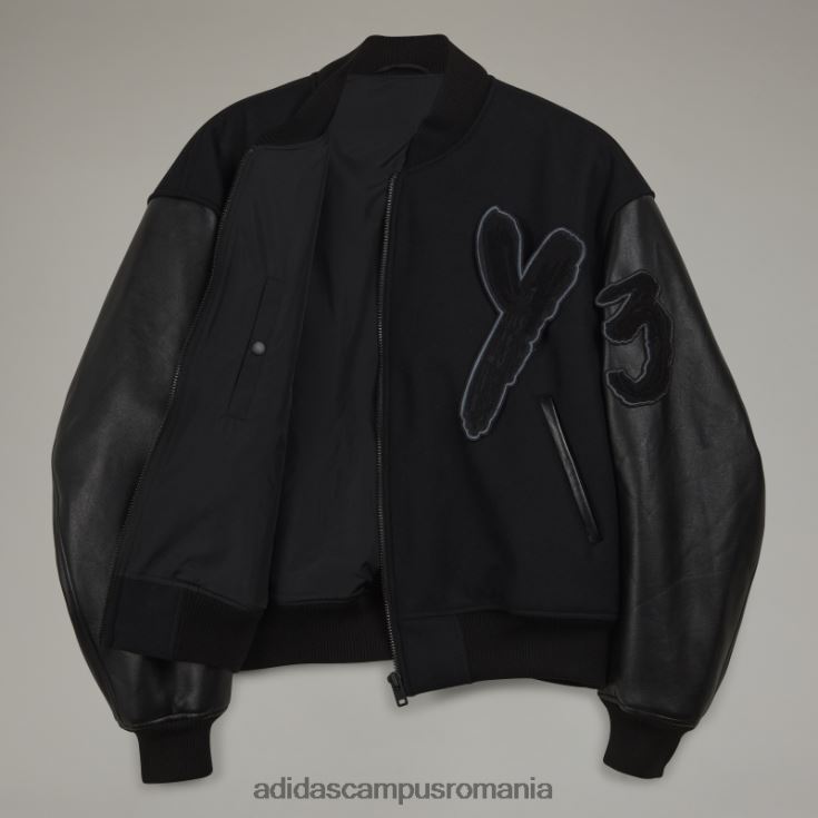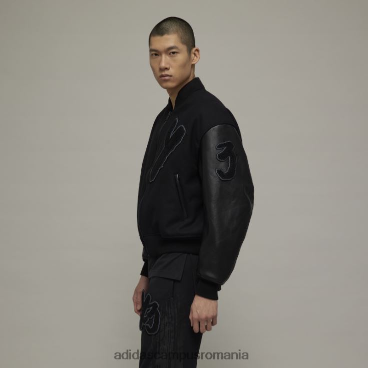 jacheta y-3 letterman creează un echilibru armonios între modă și sport. o siluetă clasică de colegiu, este confecționată din flanel de lână rezistent și are mâneci din piele sintetică. Primaloft ușor izolația adaugă căldură. grafica cu pensulă înclină din cap la piesele de arhivă yohji yamamoto.