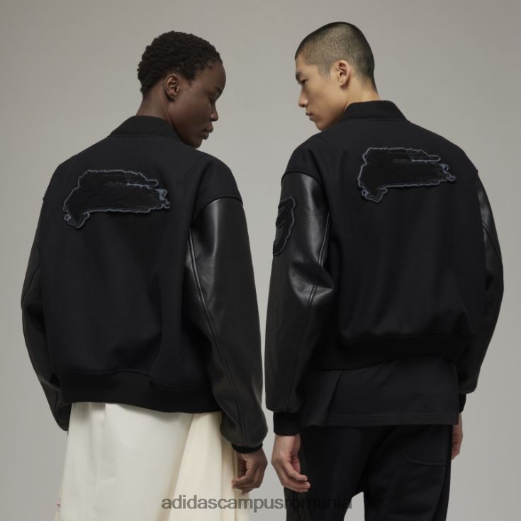 o jachetă y-3 de inspirație universitară, cu grafică în formă de pensulă.